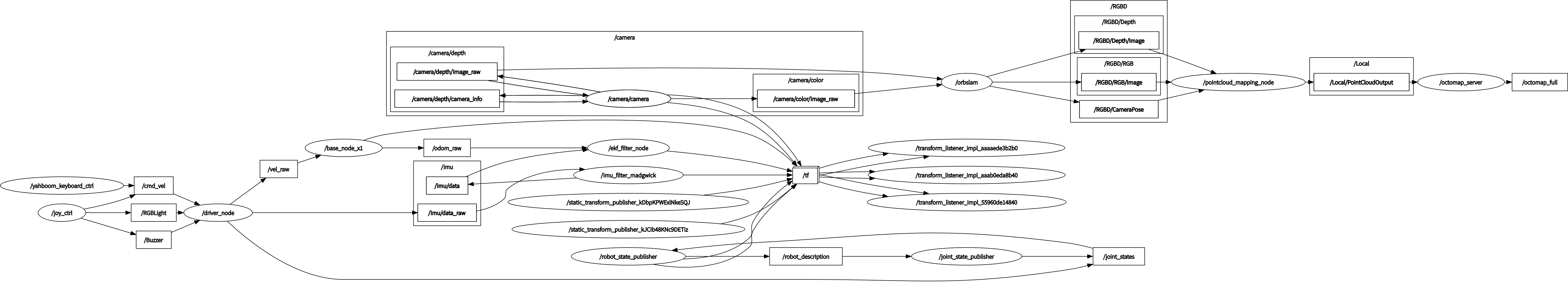 7. ORB_SLAM2 Octomap Map Building7.1, Introduction7.2 , octomap map based on camera7.3, Octomap construction based on orbslam and pointcloud_mapping7.4、Node analysis7.3.1、Display calculation graph7.3.2、Details of each node7.3.3、TF transformation