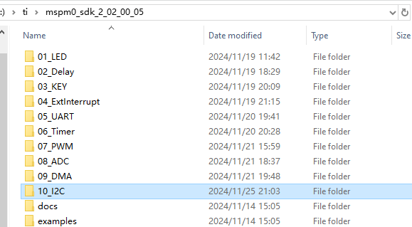 Unzip the template project in the root directory of the SDK, and I rename it to the 10_I2C folder.