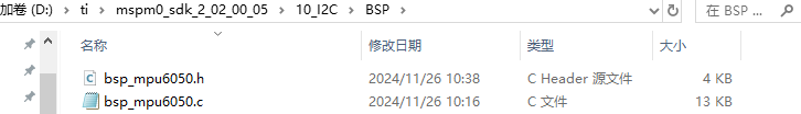 We create two new files in the project template, namely bsp_mpu6050.c and bsp_mpu6050.h. Save them in the BSP folder of the project.